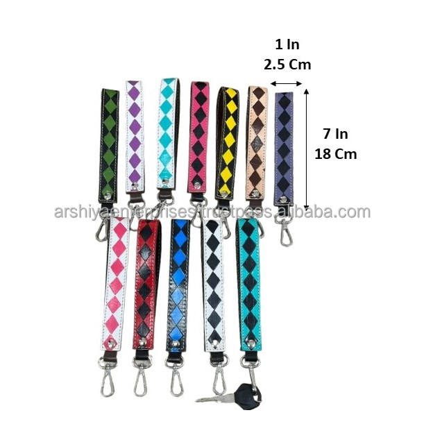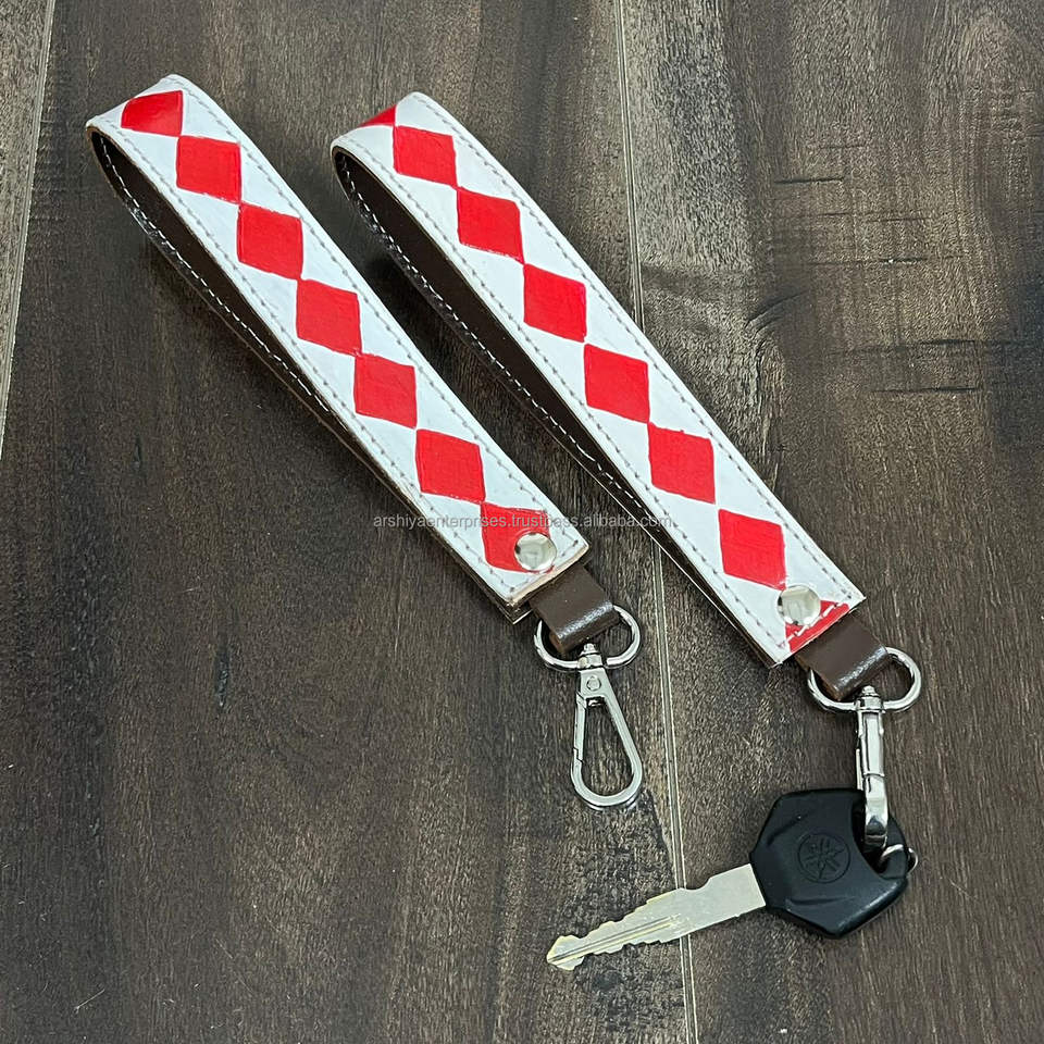พวงกุญแจหนังวัวลายตารางแบบใหม่ปี 2026 พร้อมสายคล้องข้อมือโลหะและสายหนังแท้