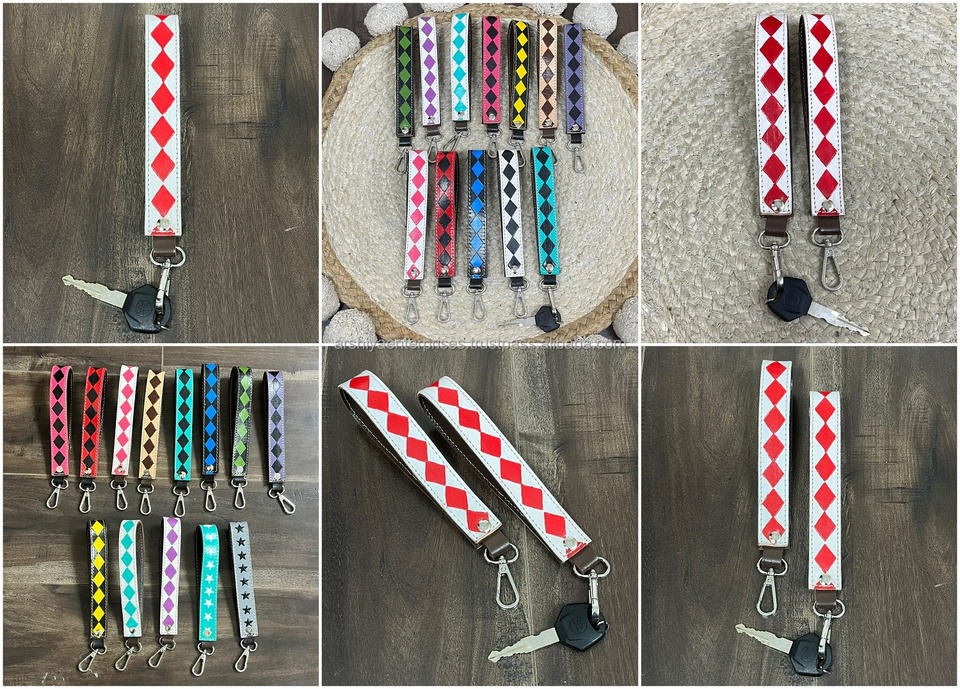 ชื่อสินค้า:พวงกุญแจหนังแท้ลายตาราง