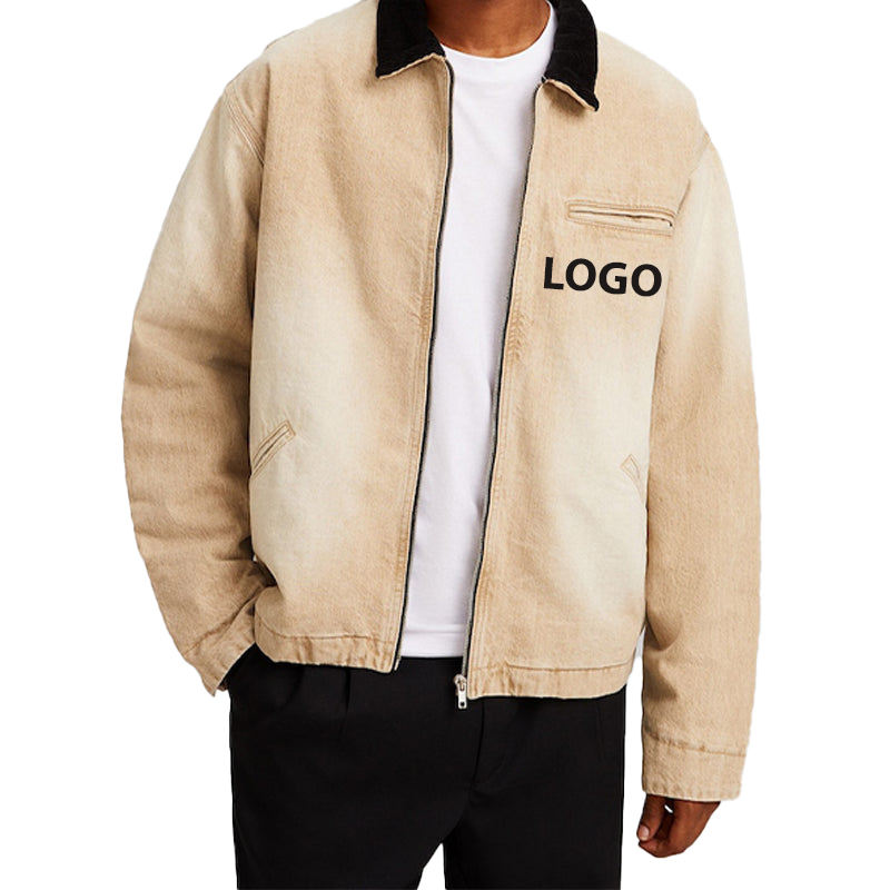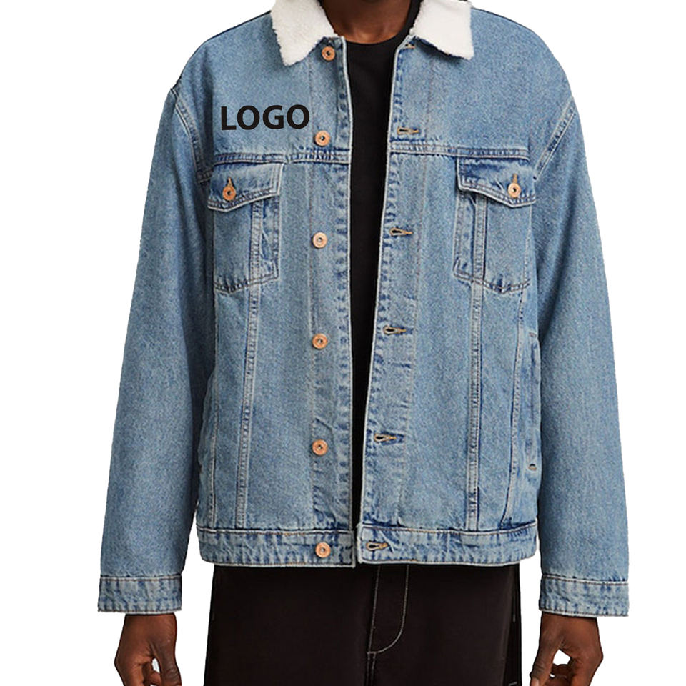 New 2026 High Quality Custom Logo Canvas Jacket Oem Designs Winter Mens Denim Jacket Blue Fleece Zipper Jeans Jacket