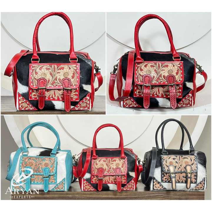 กระเป๋าหนังวัวแท้ลายดอกไม้สไตล์วินเทจตะวันตกแบบใหม่ปี 2026 งานแฮนด์เมดสุดหรู เหมาะสำหรับผู้หญิง