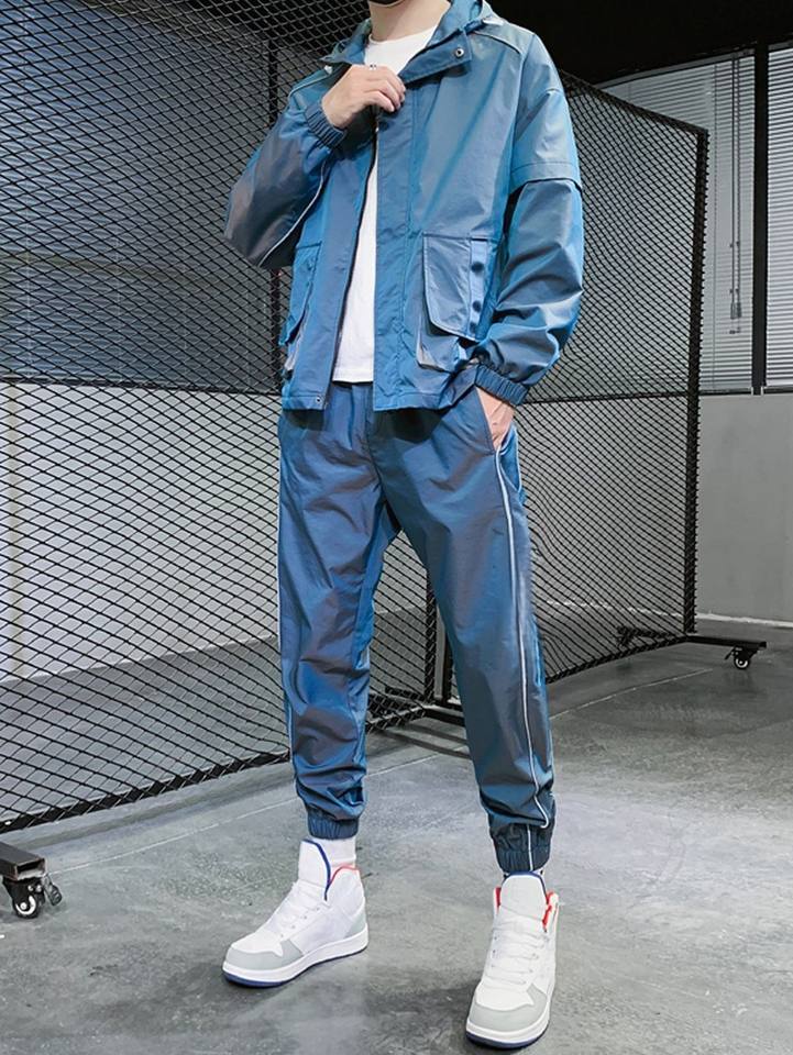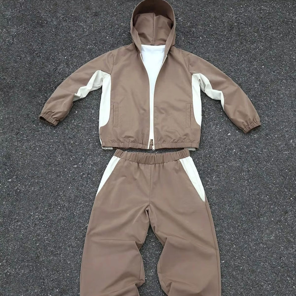 ชุดเซ็ตเสื้อแจ็คเก็ตและกางเกงวินด์เบรกเกอร์ไนลอนแบบทอโลโก้ OEM รุ่นใหม่ปี 2026 สำหรับผู้ชาย ชุดลำลอง
