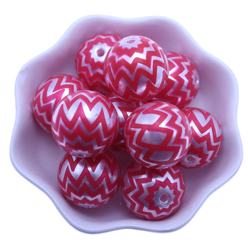 ลูกปัด ABS ทรงกลมสีเทอร์ควอยซ์ขนาด 20 มม. แบบหลวม รูปทรงซิกแซก/เชฟรอน สำหรับทำเครื่องประดับเด็ก