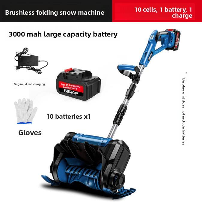 เครื่องกวาดหิมะไฟฟ้าแบบพกพา 21V 3000mA แบตเตอรี่ความจุสูง พร้อมแปรงกำจัดหิมะแบบพับได้สองทบ