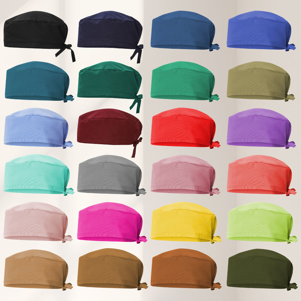 หมวกพยาบาลแบบใหม่ 24 สีพื้น สำหรับทำงาน ผู้หญิง ผู้ชาย ใช้ในโรงพยาบาล ทันตกรรม ปรับขนาดได้ เหมาะสำหรับผมยาวและผมสั้น หมวกแพทย์