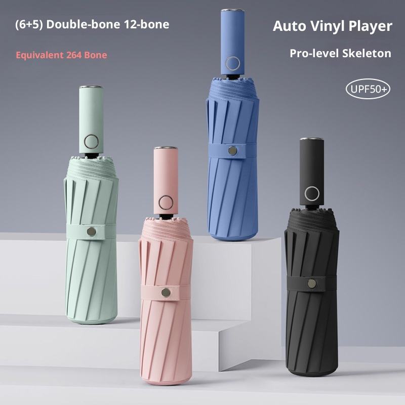 ร่มกันแดดแบบพับสามตอนอัตโนมัติ รุ่น New Casual Travel 264 โครงกระดูก ป้องกันรังสียูวี สีดำ สำหรับผู้หญิง