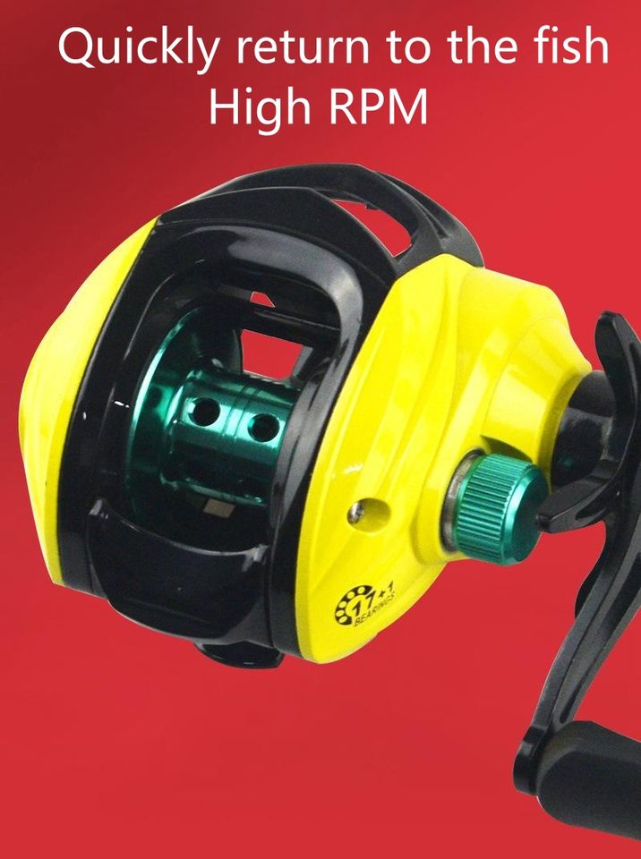 รอกตกปลาสีเหลือง265g 8kg, รอกเบทคาสติ้งสำหรับมือซ้าย-ขวาสีแดง