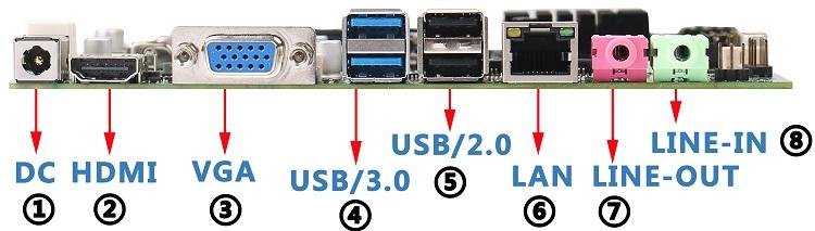แสดงพอร์ต, อีเธอร์เน็ต, SATA, USB 2.0, USB 3.0, VGAพอร์ต