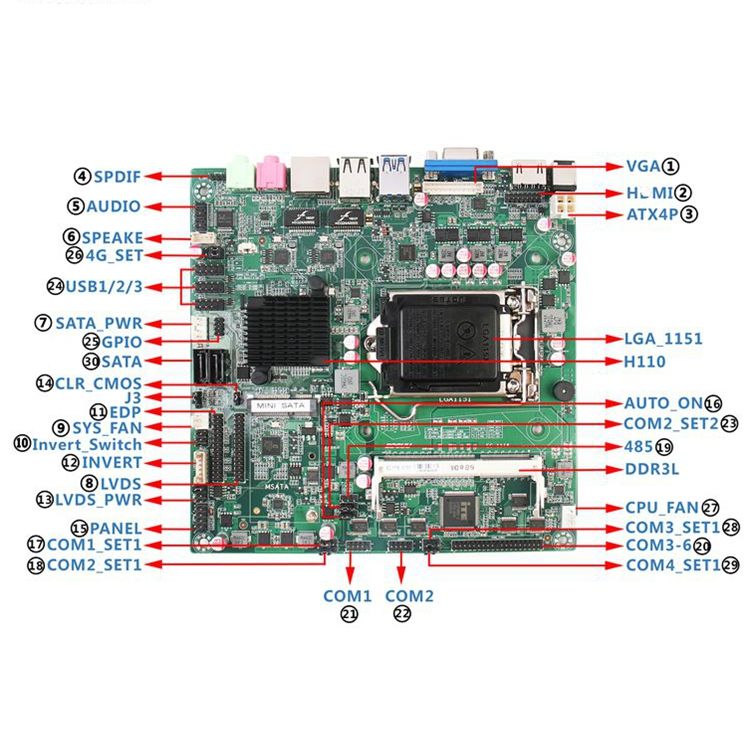 มาเธอร์บอร์ด Mini-ITX 2GB ใหม่10USB 10RS232 Intel I7/I5/I3คอร์ DDR4ช่องทางเดียว SATA Intel ชิปเซ็ต H110ด่วนแบบบูรณาการ