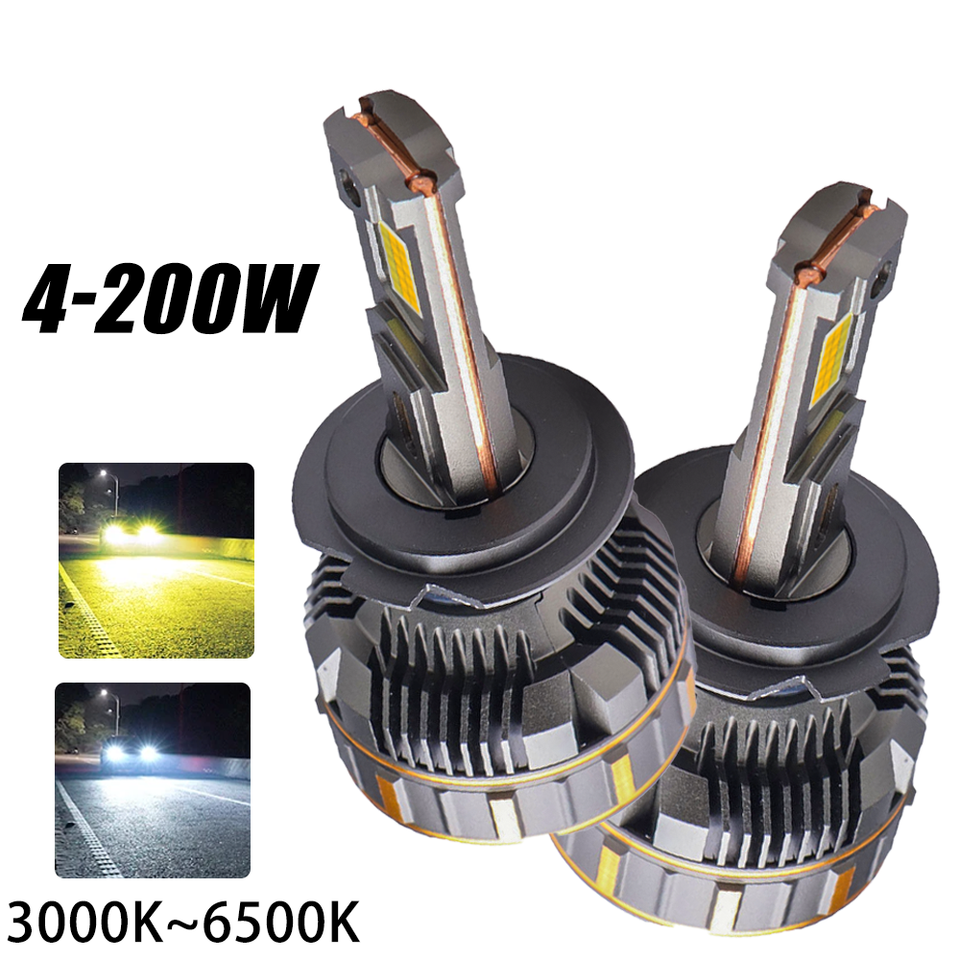 ไฟหน้า LED 3 สีใหม่ 3000K 4300K 6500K ควบคุมผ่านแอพมือถือ 200W ท่อทองแดง 4 เส้น H1 9005 H4 H11 H7