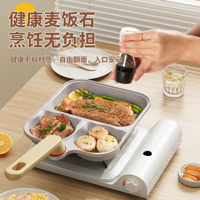 กระทะครอบครัว 3 in 1 รุ่นใหม่ เคลือบหินไมแฟน ป้องกันติดกระทะ สำหรับทำอาหารเช้า สเต็ก และไข่ ขนาด 18.8 ซม. พร้อมด้ามจับ