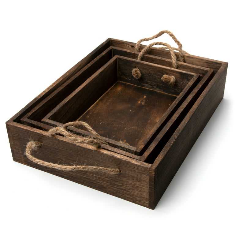 New 3 Piece Tea Serving Tray With Rope Handle Custom Solid Wood Serving Tray Square High Quality Acacia Wood Tray