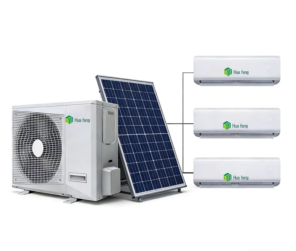 เครื่องปรับอากาศมินิสปลิตแบบหลายโซน 30000 - 36000 บีทียู ใช้พลังงานแสงอาทิตย์ AC/DC พร้อมแผงโซลาร์เซลล์ สำหรับบ้านหรือโรงแรม มีสินค้าในสต็อก
