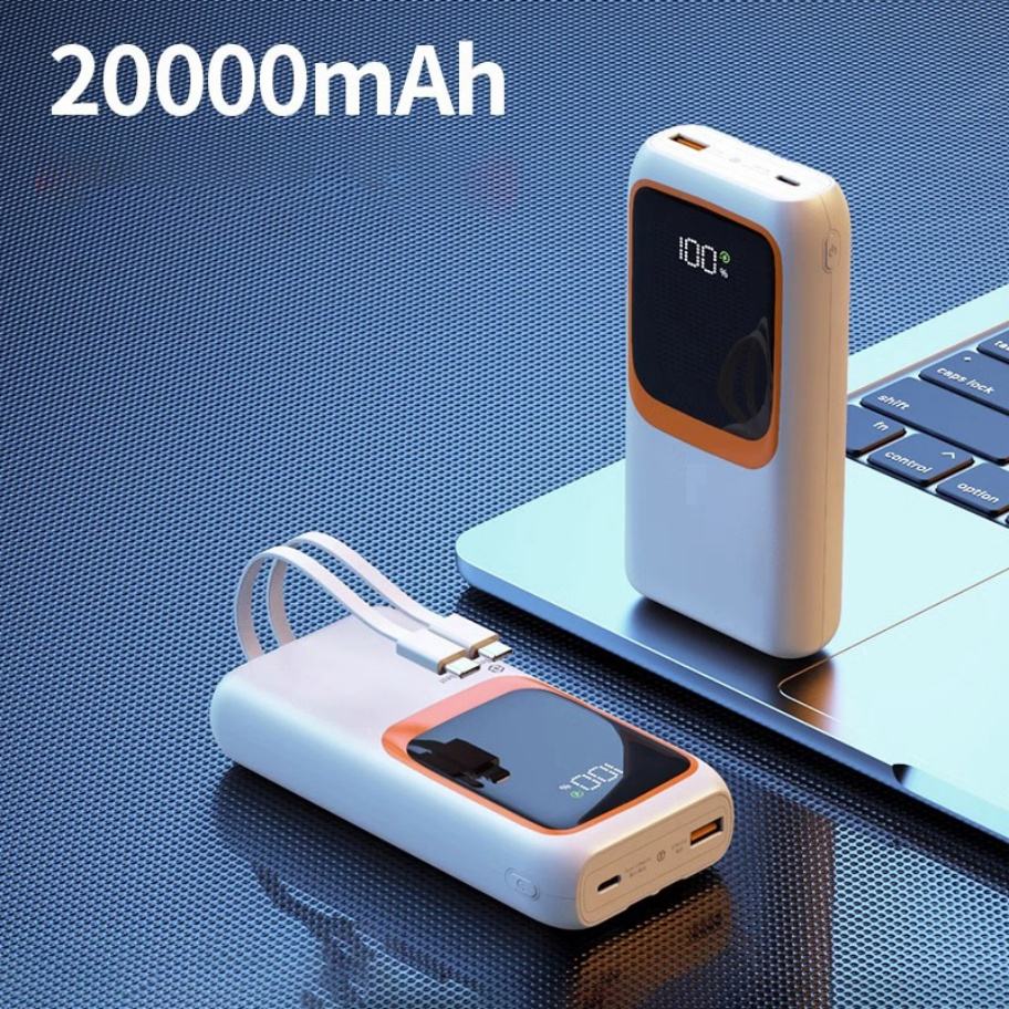 แบตสำรองพกพาแบบชาร์จเร็วพิเศษ 30000mah PD22.5W พร้อมสายชาร์จในตัว 2 เส้น ใช้ได้กับอุปกรณ์ทั่วไป