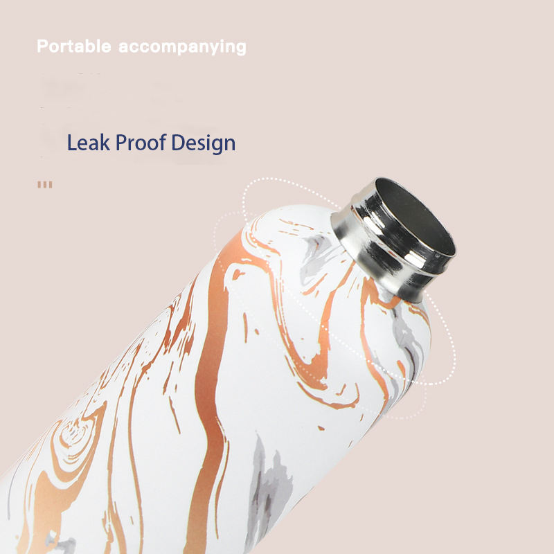 กระติกน้ำสุญญากาศสแตนเลสแบบพกพา รุ่นใหม่ 304 แฟชั่น สปอร์ต ปากแคบ พร้อมลายดอกไม้