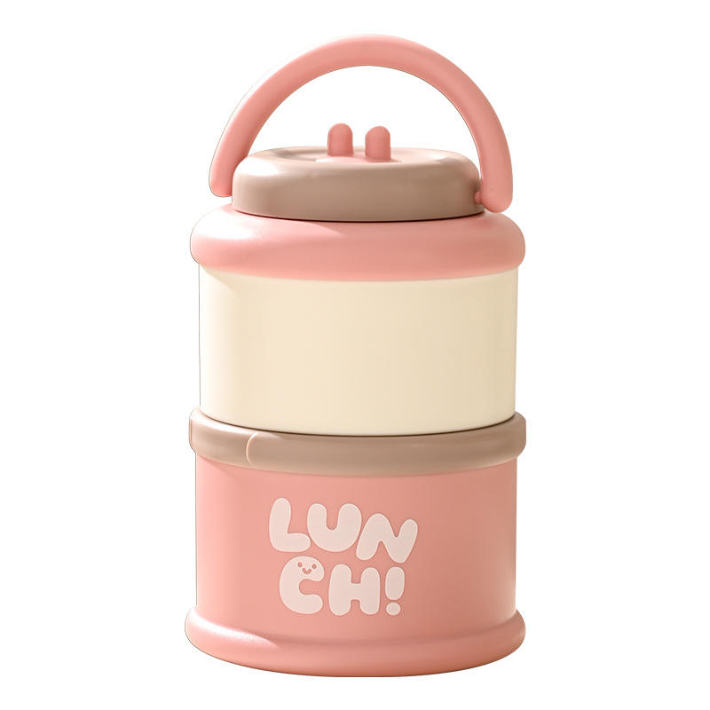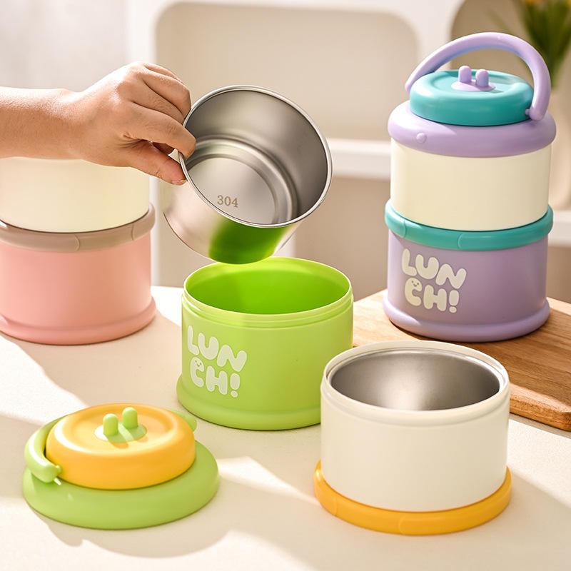 ใหม่ 304 กล่องอาหารกลางวันสแตนเลสหลายชั้นแบบพกพาสำหรับนักเรียนและพนักงานออฟฟิศการออกแบบทรงกระบอกสีทึบ