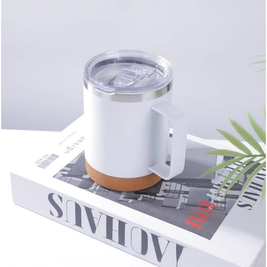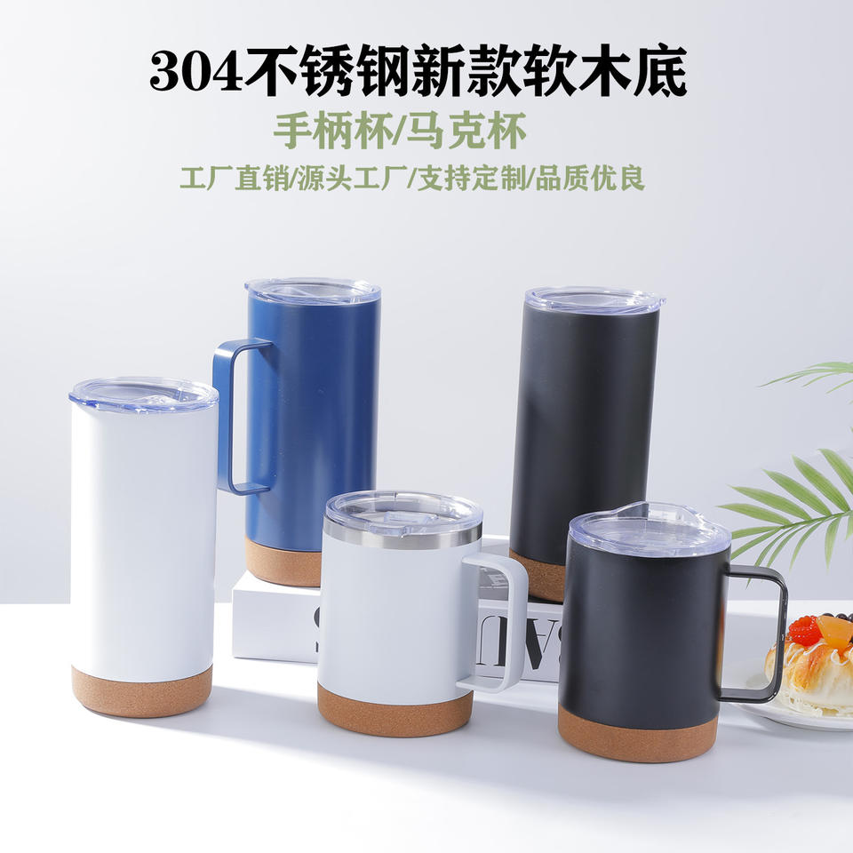 แก้วน้ำสแตนเลส 304 แบบสุญญากาศใหม่ พร้อมฐานไม้ก๊อกและหูจับ สำหรับเป็นของขวัญทางธุรกิจ