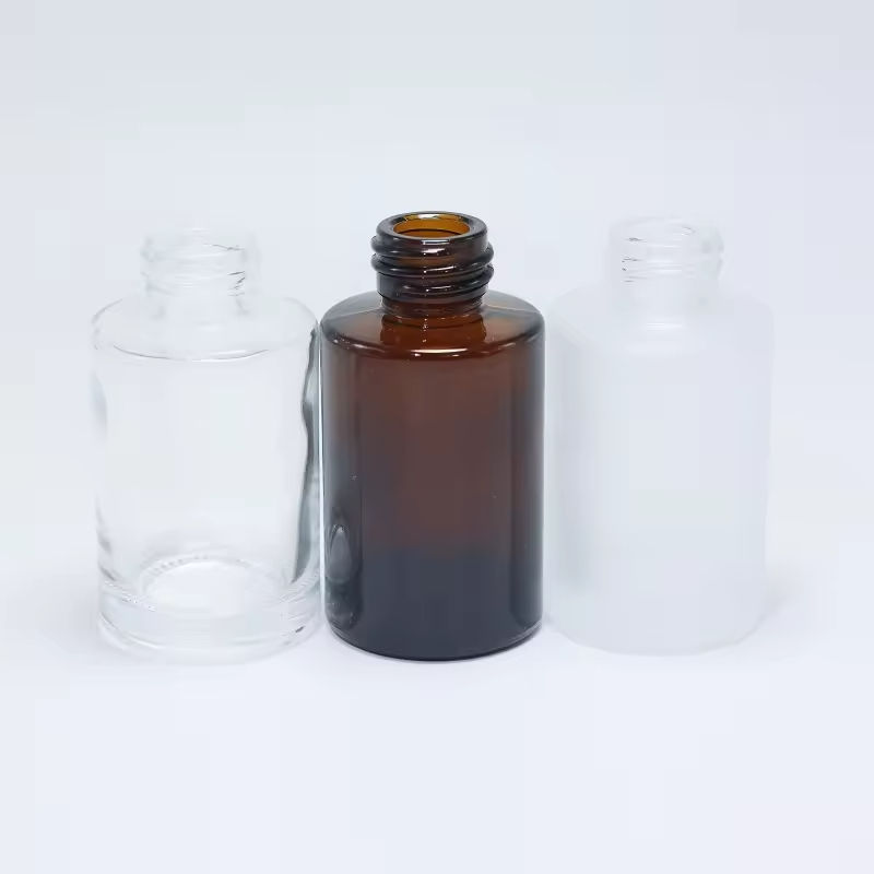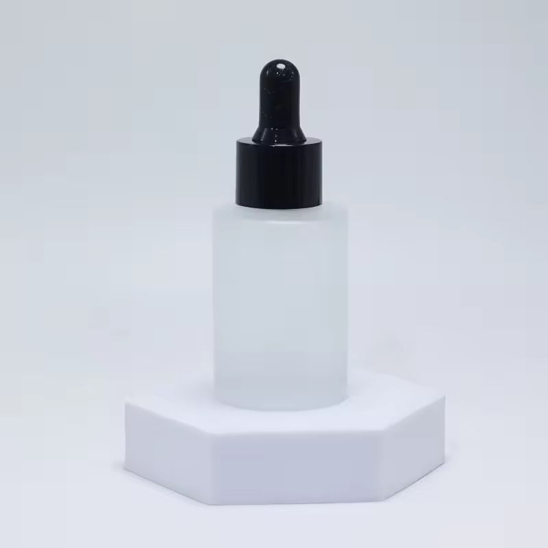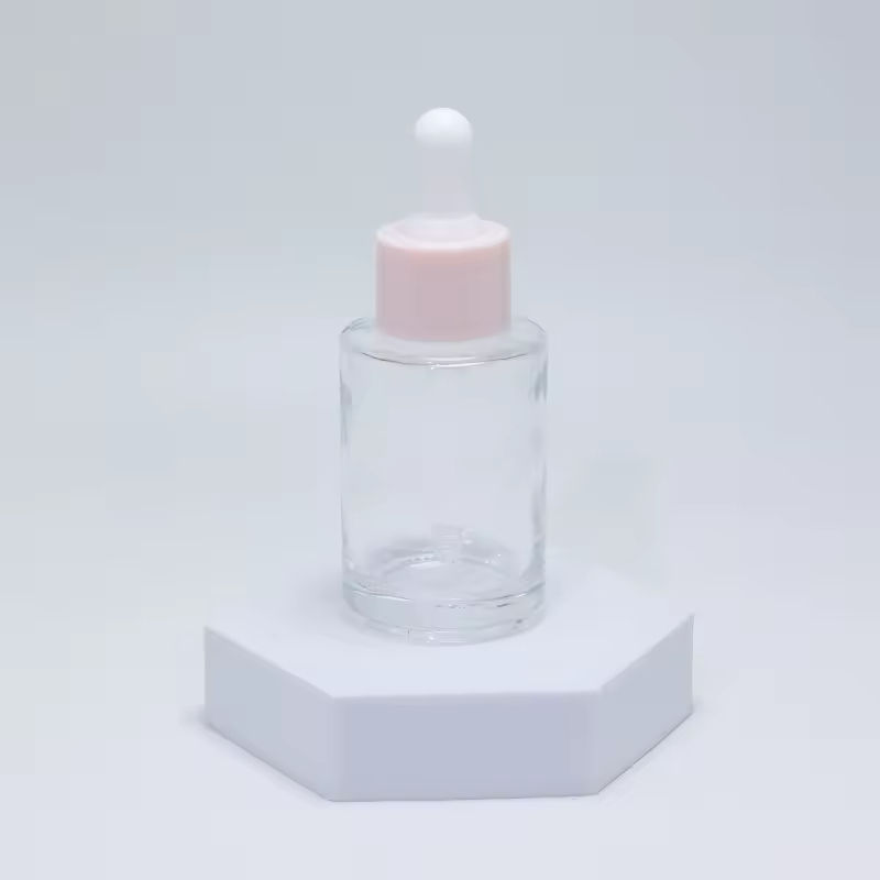 ขวดแก้วใสทรงกลมแบบใหม่ขนาด 30 มล. พร้อมหัวหยดแบบไหล่เรียบ