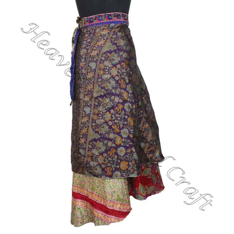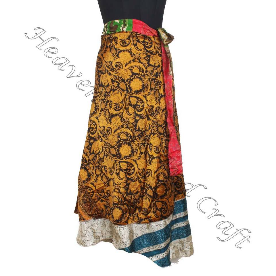 New 38 Inch Vintage Art Silk Double Layer Reversible Sari Magic Women Wrap Skirt Wholesale Beach Wear Sari Silk Long Wrap Skirts