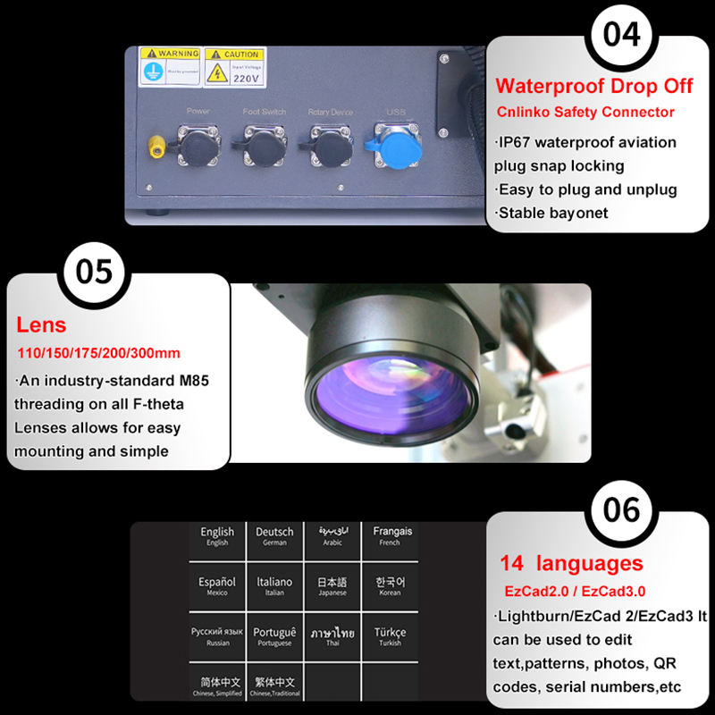 เครื่องเลเซอร์ไฟเบอร์โมปา50W/100W เครื่องแกะสลักเลเซอร์ UV JPT 355nm ทำเครื่องหมายโลหะรองรับรูปแบบ BMP & dxf/plt 3D ใหม่
