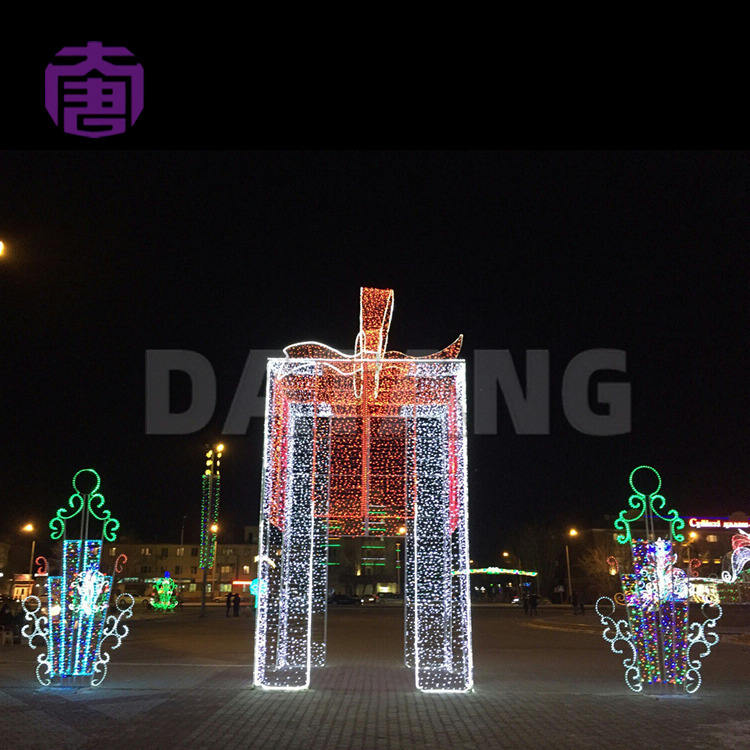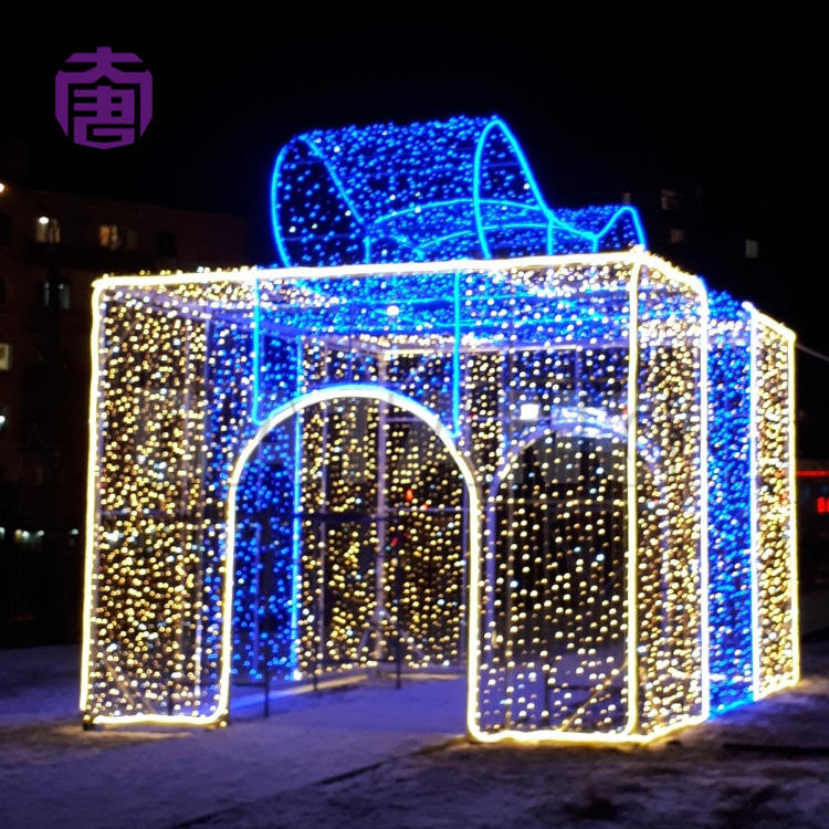 ไฟคริสต์มาส LED 3 มิติ รูปทรงสี่เหลี่ยม สำหรับตกแต่งภายใน กันน้ำ โครงเหล็ก กล่องของขวัญ ตกแต่งภายนอก IP65 ให้แสงสว่างสวยงาม