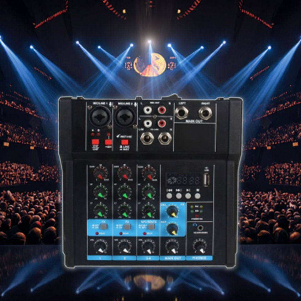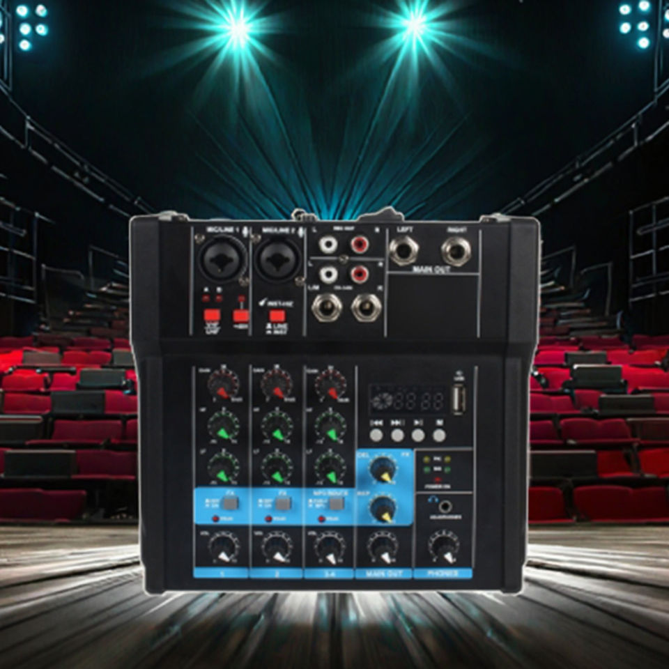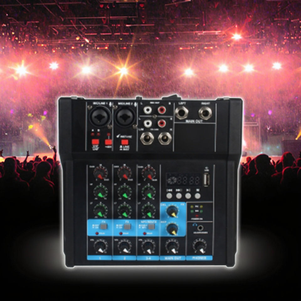 คอนโซลมิกซ์มินิมิกซ์มิกซ์มินิ USB ขนาดเล็ก4ช่องสัญญาณสำหรับใช้ในการถ่ายทอดสดบนเวทีคอมพิวเตอร์บลูทูธรีเวิร์บ