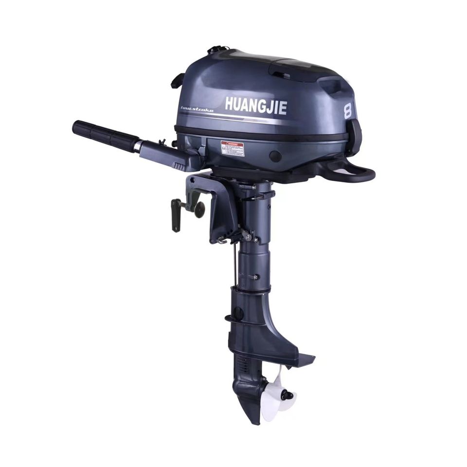 เครื่องยนต์เรือติดท้ายแบบ 4 จังหวะ 8 แรงม้า แกนสั้น ระบายความร้อนด้วยน้ำ ใช้เชื้อเพลิงเบนซิน ระบบจุดระเบิดแบบ CDI สำหรับเรือยามาฮ่า