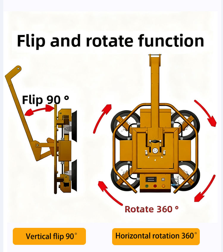 เครื่องยกสุญญากาศไฟฟ้าแบบใหม่ 400 กก. 600 กก. 800 กก. สำหรับยกกระจก หมุนได้ 360 องศา พลิกได้ 90 องศา รองรับน้ำหนัก 1000 กก. ปรับเอียงอัตโนมัติ