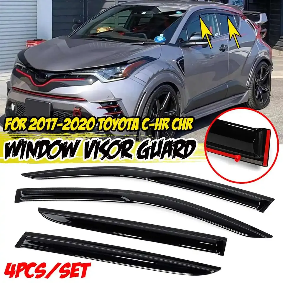 แผ่นบังแดดข้างรถยนต์สีดำ 4 ชิ้น สำหรับ TOYOTA C-HR CHR ปี 2017-2020