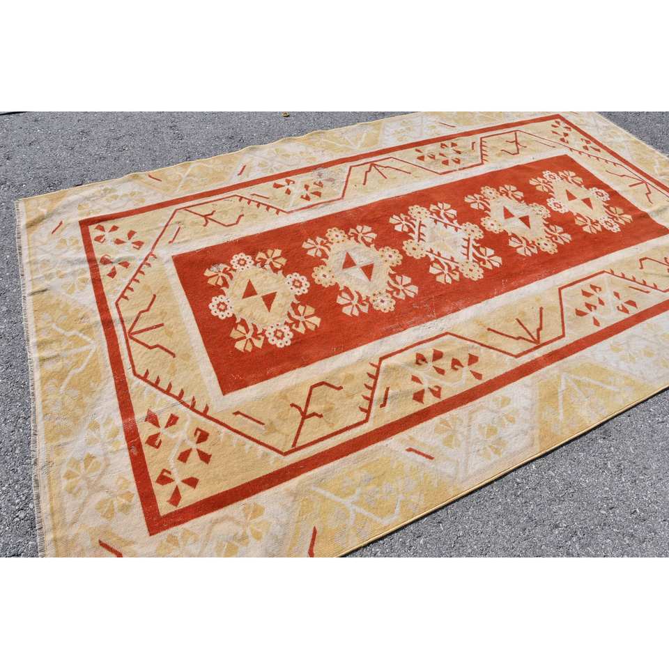 พรมเย็บปะสีเหลืองส้มคลาสสิก9.6ft ใหม่5.9ชิ้น X แบบตุรกีแผ่นรองหลังลาเท็กซ์สำหรับใช้ชีวิตในบ้านทางเข้าสำหรับใช้ในห้องโถง