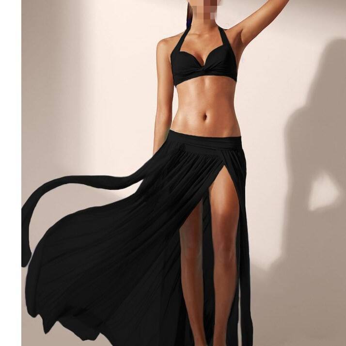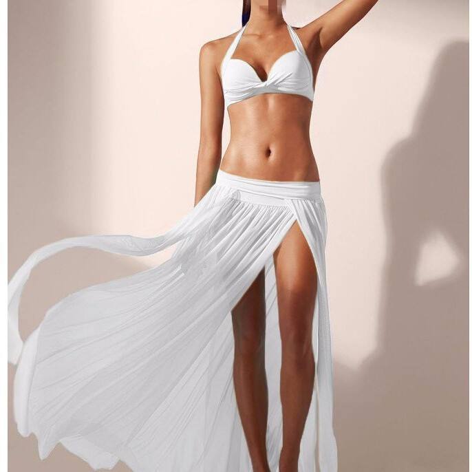 ชุดเดรสชายหาด5สีแบบใหม่สำหรับผู้หญิงชุดบิกินี่ตาข่ายคลุมชุดว่ายน้ำโสร่งเปิดด้านข้างกระโปรงผ้าโสร่ง
