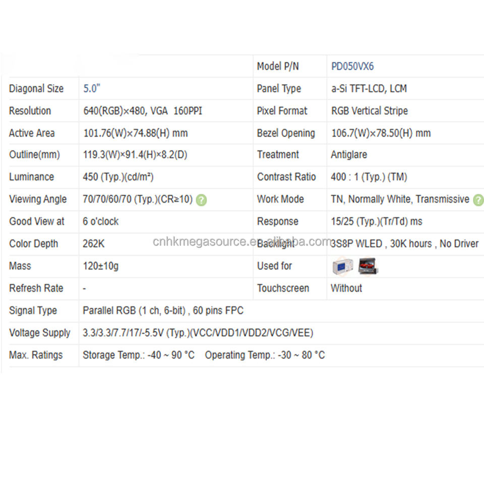 New 5 inch 640*480 Display Module LCD Screen PD050VX6 a-Si TFT LCD module Industrial display