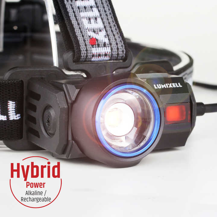 ไฟฉายคาดศีรษะ LED แบบไฮบริด 500 ลูเมนส์ ใช้พลังงานจากแบตเตอรี่ AA และพอร์ต Type-C พกพาสะดวกสำหรับกิจกรรมกลางแจ้ง พร้อมระบบควบคุมการซูม
