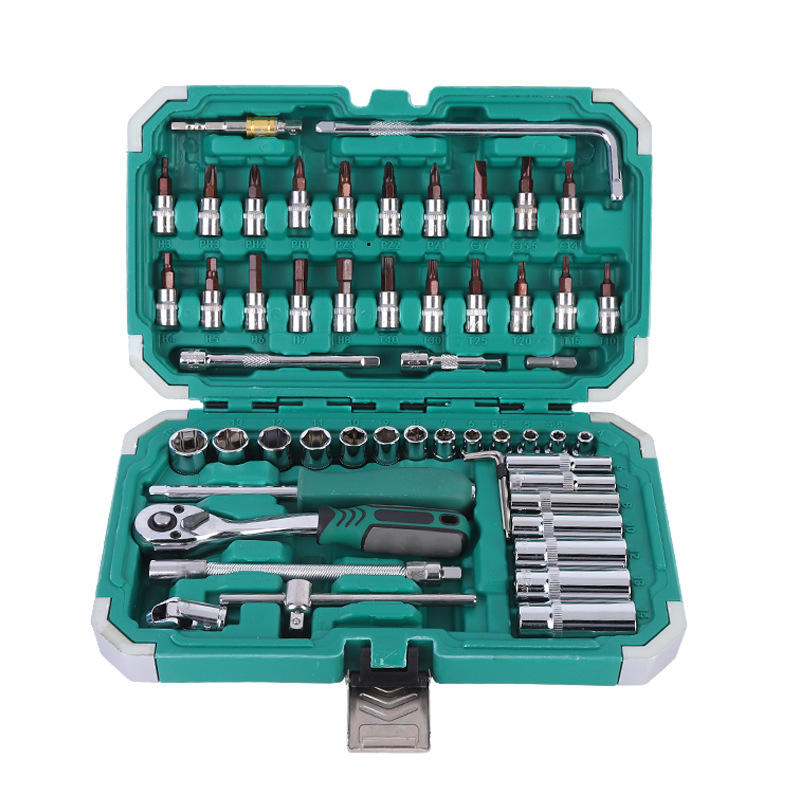 ชุดประแจรวม 55 ชิ้น รุ่นใหม่ ผลิตจากพลาสติก PC เสริมความแข็งแรง บรรจุในกล่องปิดผนึกอย่างดี สำหรับซ่อมเครื่องยนต์ พร้อมก้านงอ หัวประแจ และด้ามขันแบบมีวงล้อ