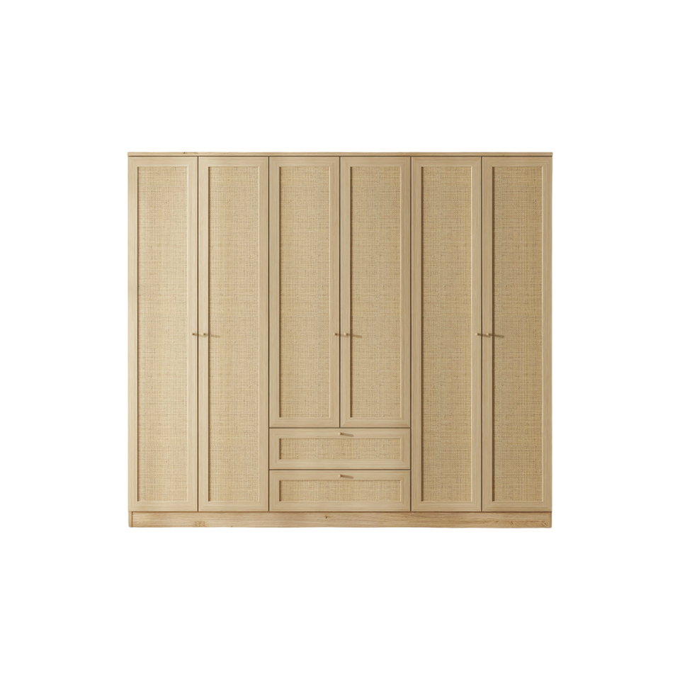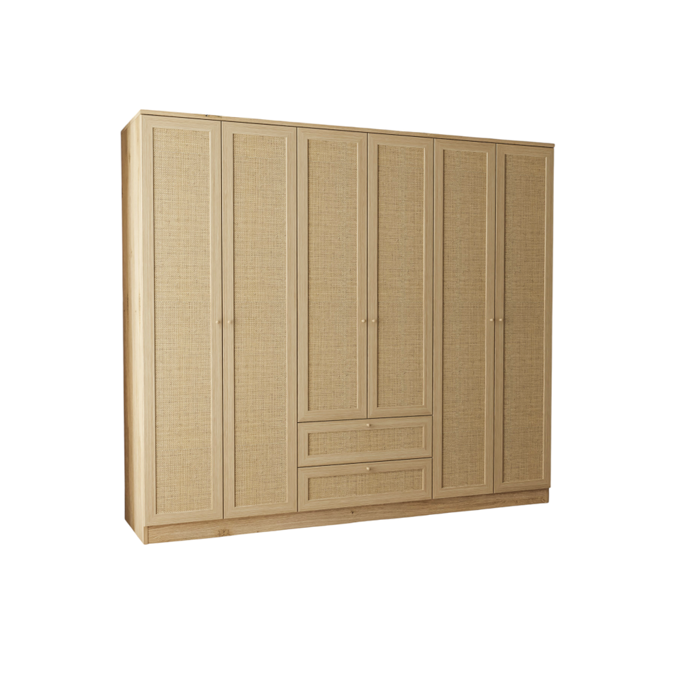 ตู้เสื้อผ้า 2 ประตู 6 ช่อง พร้อมราวแขวนเสื้อผ้า