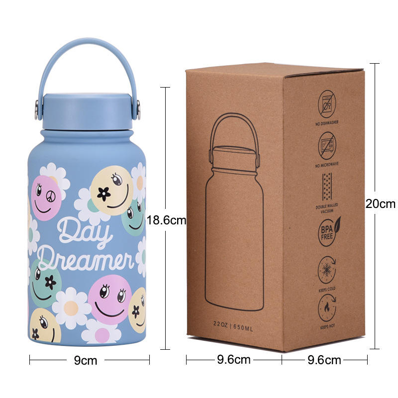 New 650ml Thermos Cup Wide Mouth Portable Vacuum Children's Student Sports Water Bottle Outdoor Printed Water Cup