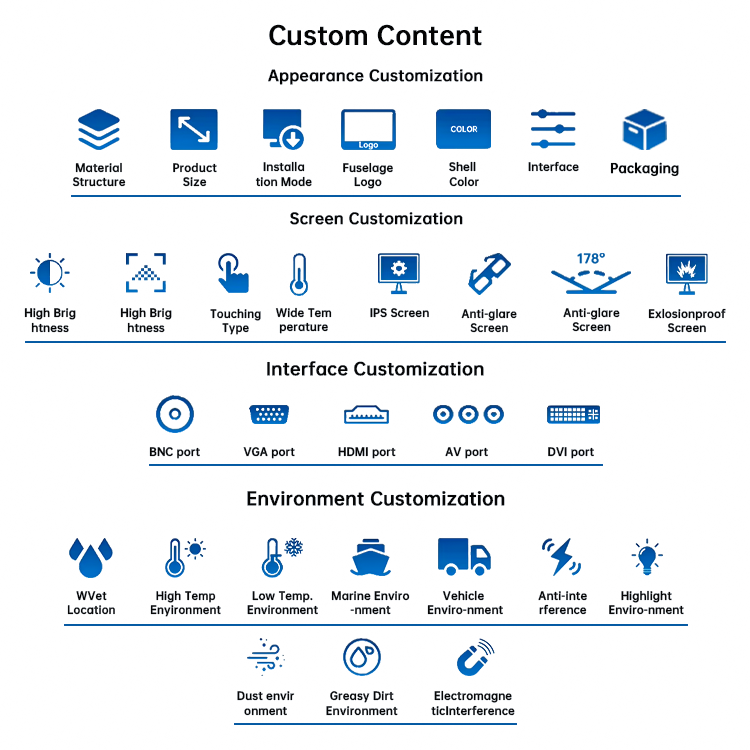 จอภาพระบบสัมผัสแบบ Open Frame สำหรับอุตสาหกรรม ขนาด 7-43 นิ้ว รุ่นใหม่ มาตรฐาน Marine IP65 กันน้ำ ได้รับการรับรอง ROHS ความสว่าง 1000 นิต 1500 นิต แบบ Capacitive LCD