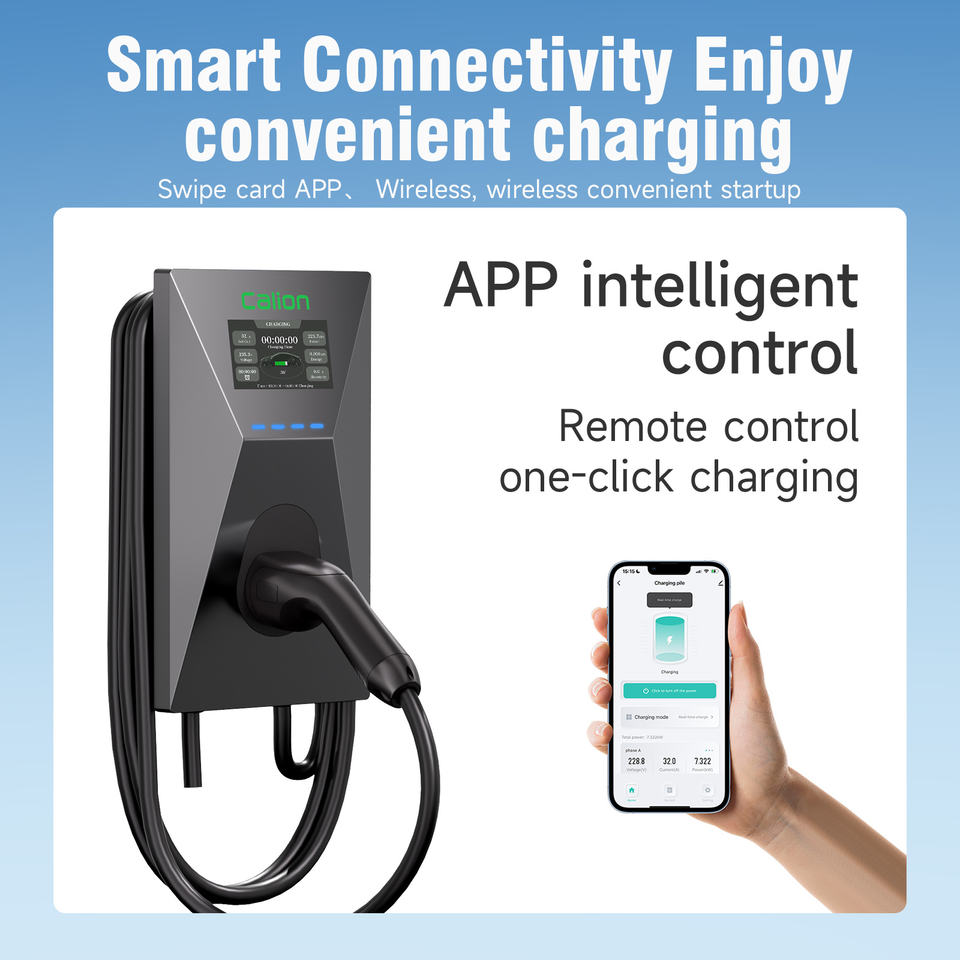 สถานีชาร์จรถยนต์ไฟฟ้าแบบติดผนัง CALION รุ่นใหม่ 7KW-11KW-22KW มาตรฐาน GB/T ป้องกันน้ำ IP54 พร้อมฟังก์ชัน RFID/APP ได้รับการรับรอง ETL/FCC