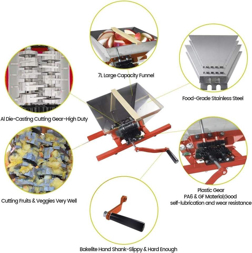 เครื่องบดผลไม้สแตนเลสแบบแมนนวล 7 ลิตร รุ่นใหม่ ปี 2023 สำหรับบดแอปเปิ้ล เบอร์รี่ องุ่น แยกก้าน บดละเอียด ทำไวน์ ไซเดอร์ น้ำผลไม้ พร้อมฐานตั้ง
