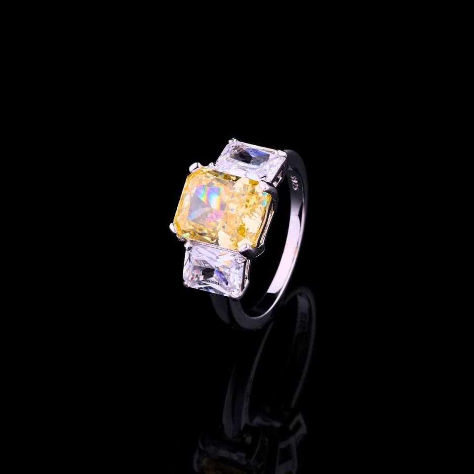 แหวนเงินแท้ 925 ประดับเพชรเหลือง สำหรับผู้หญิง ชุดเครื่องประดับเงินแท้ S925 พร้อมเพชร 7 * 9 สไตล์ยุโรปและอเมริกา หรูหราเบาๆ สำหรับงานแต่งงาน