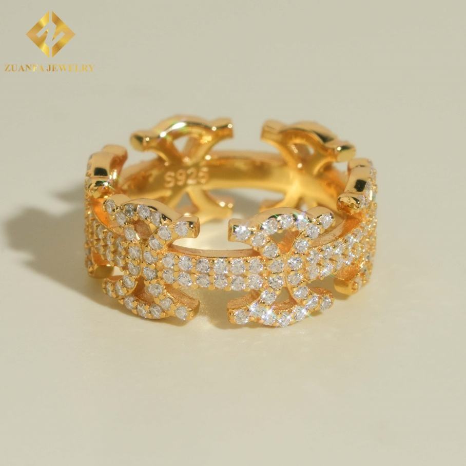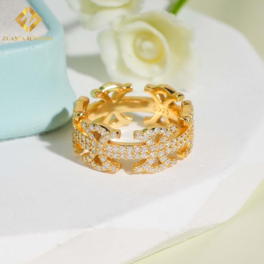 แหวนเพชรชุบทอง18K สีเงินแท้925ใหม่แหวนแต่งงานหมั้น Moissanite ตามสั่ง