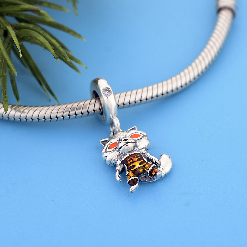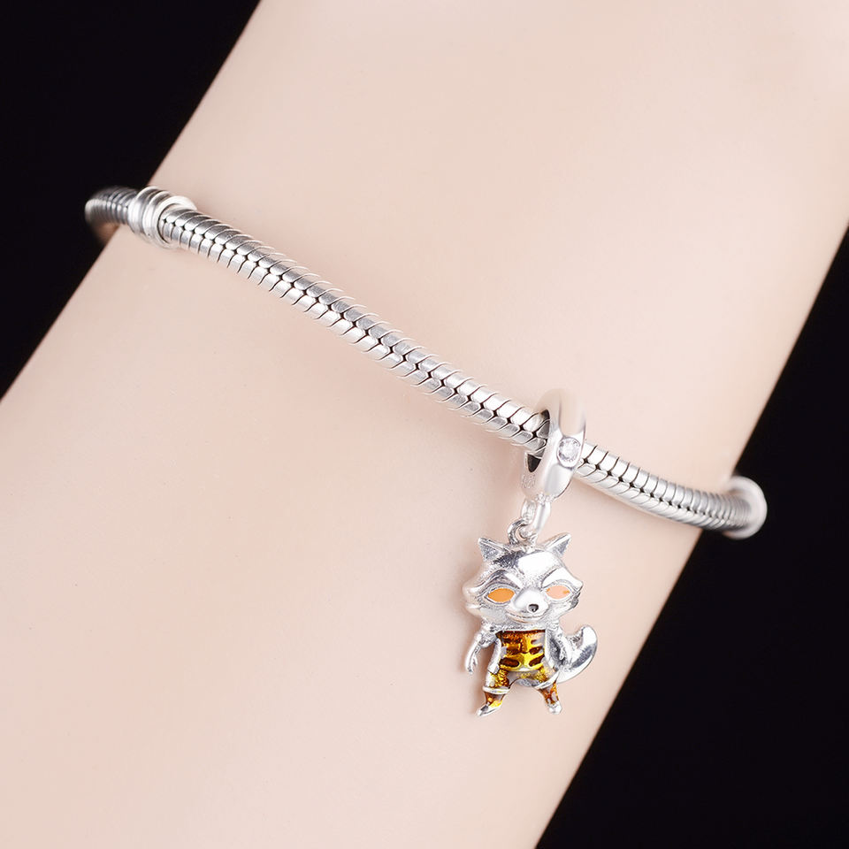 จี้เงินแท้ 925 รูปสุนัขจิ้งจอกการ์ตูน ตาเคลือบสีส้ม สำหรับสร้อยข้อมือแบบชาร์ม ทำเครื่องประดับ
