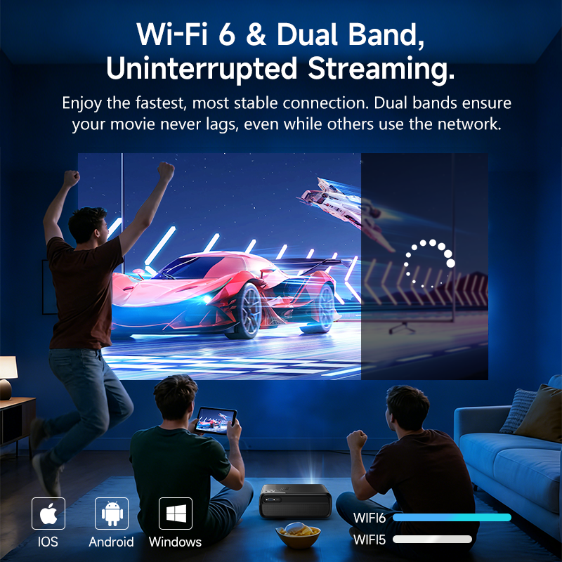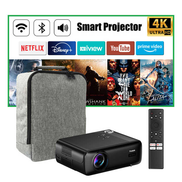 ชิปเซ็ต 9660 ใหม่ สมาร์ท WIFI BT 1200CVIA โปรเจคเตอร์ | การเพิ่มประสิทธิภาพ CPU/GPU MEMC | โปรเจคเตอร์พกพาถอดรหัส 4K พร้อมกระเป๋า