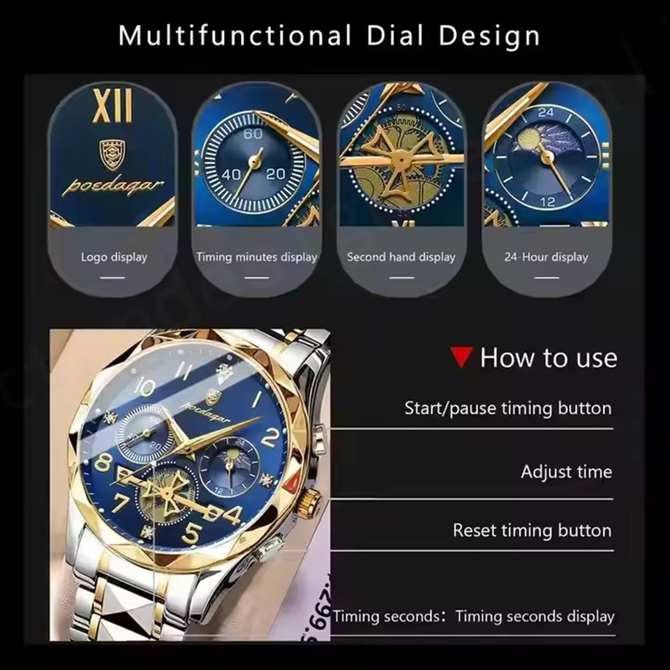 นาฬิกาข้อมือชายสแตนเลสเรืองแสงกันน้ำ972ใหม่2025