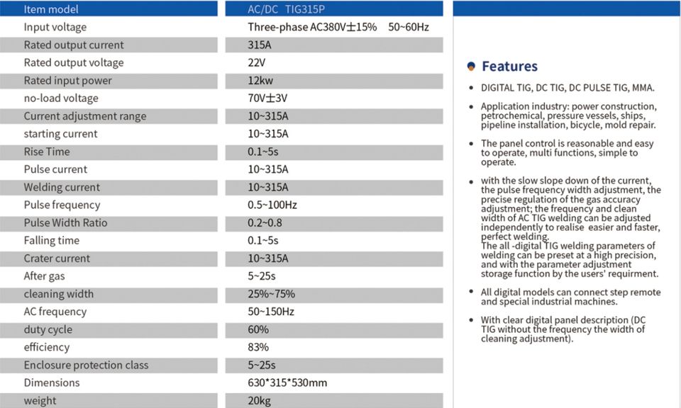 Model:TIG315P ACDC