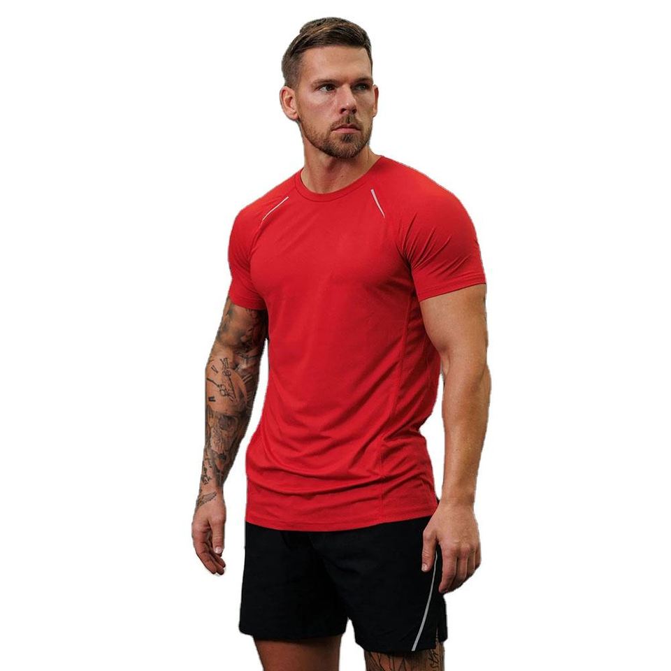 เสื้อยืดออกกำลังกายระบายอากาศได้ดีมีสไตล์ใหม่สำหรับผู้ชายเสื้อใส่ไปยิมผ้าโพลีเอสเตอร์ทรงสลิมฟิต