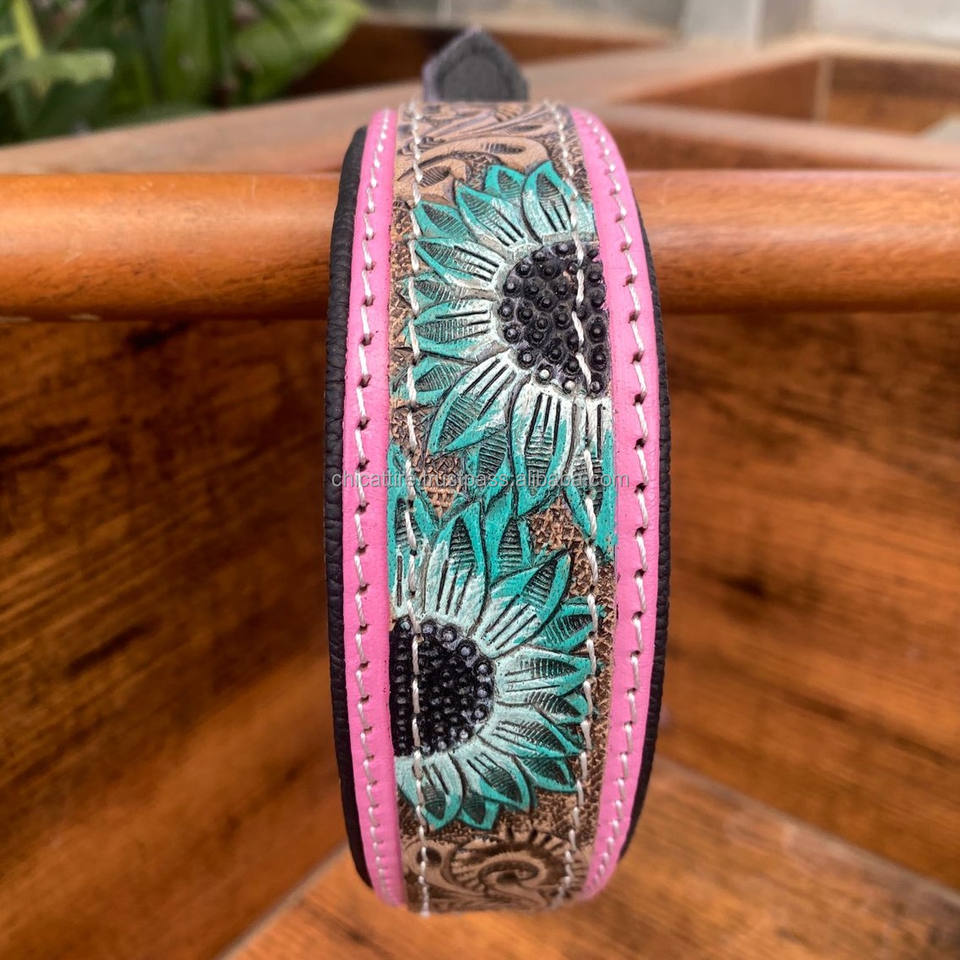 Product name:Hand Tooled Leather Padded Dog Collar