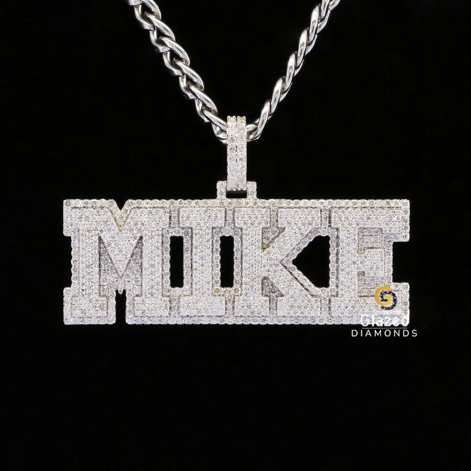 จี้ฮิปฮอปสำหรับผู้ชายแบบกลมลายเพชรสวยงาม10K สีขาวทอง