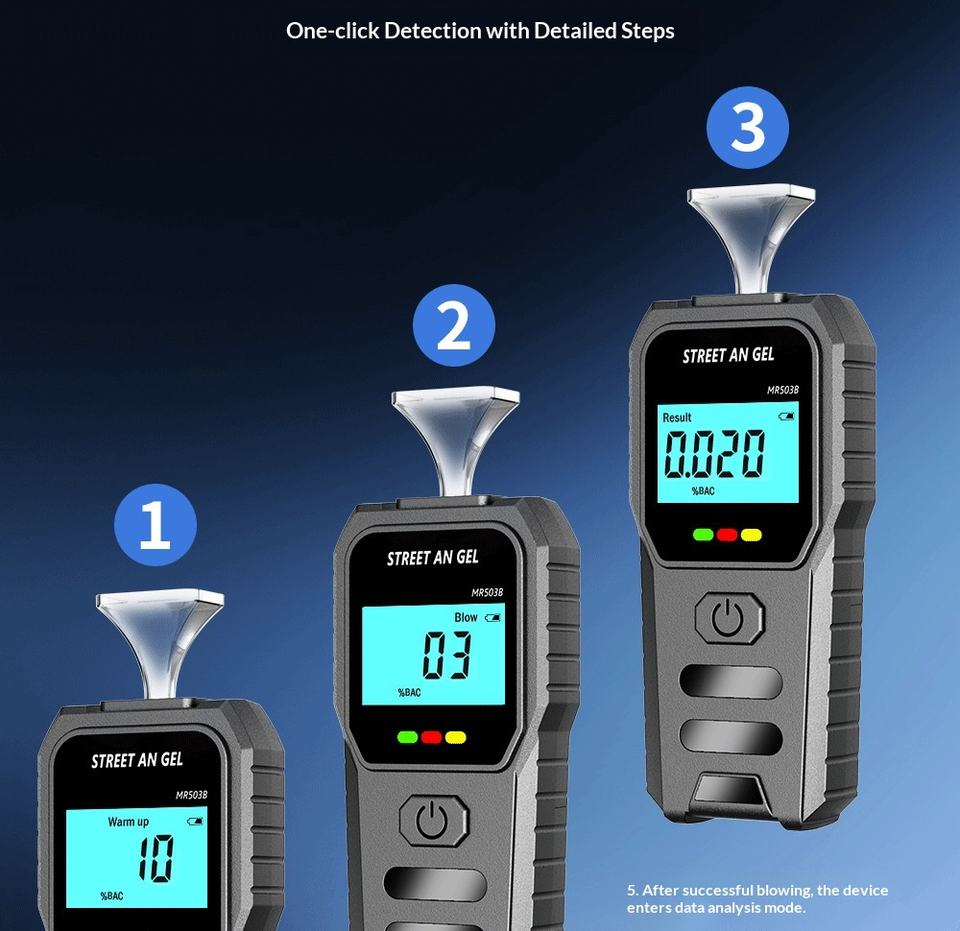 เครื่องตรวจวัดแอลกอฮอล์ในลมหายใจแบบเป่าลม รุ่นใหม่ ความแม่นยำสูง หัวเป่าลมแบบสองทาง รุ่นพิเศษสำหรับการตรวจวินิจฉัยแอลกอฮอล์ในลมหายใจ รุ่น MR503B ใช้แบตเตอรี่ 3AAA