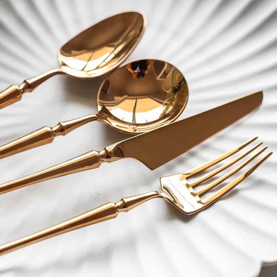 ชุดช้อนส้อมสไตล์อเมริกันใหม่ สำหรับตกแต่งโต๊ะอาหาร ชุดช้อนส้อมโลหะทำมือ ชุดเครื่องเงิน ราคาขายส่ง