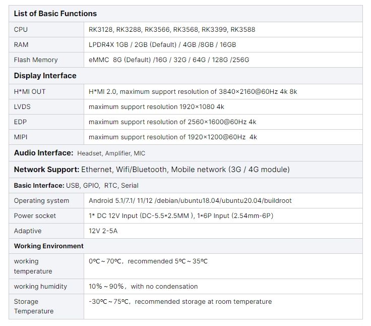 โปรเซสเซอร์:Rockchip RK3566 RK3568 RK3588